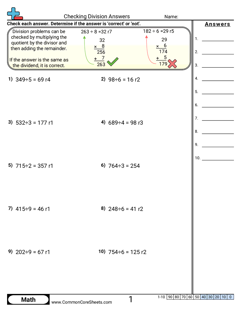 Checking Division Answers Worksheet Download