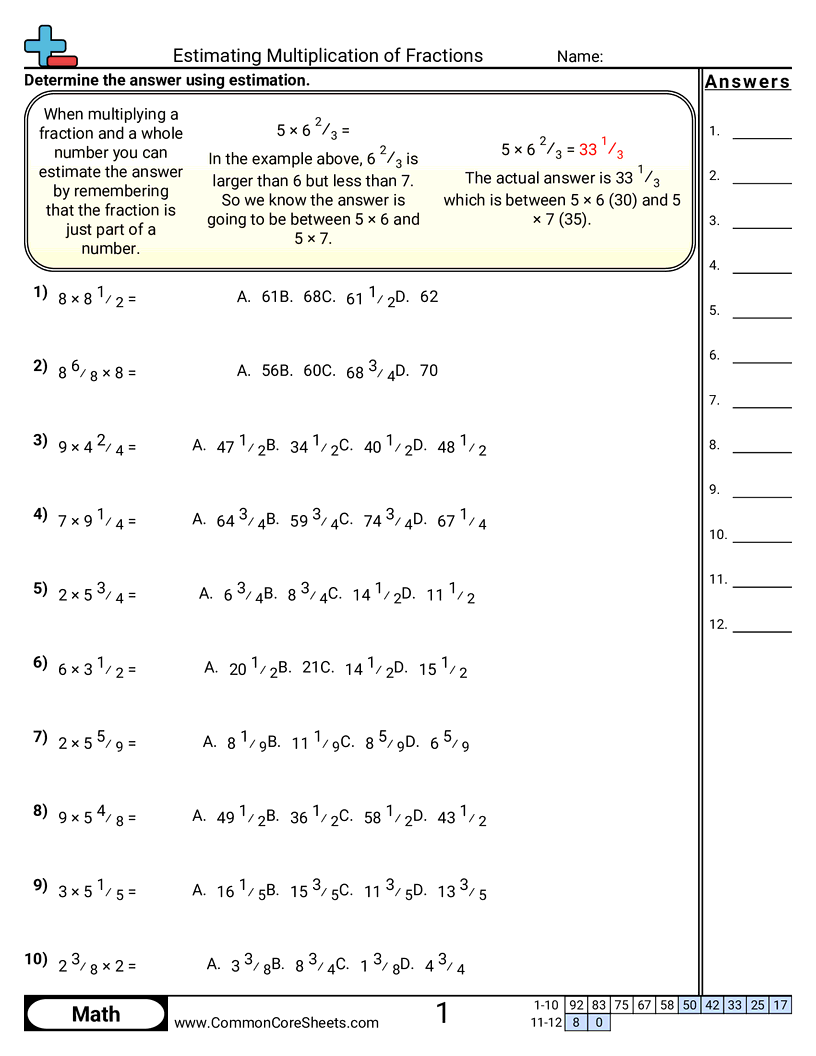 Estimating Multiplication of Fractions Worksheet Download