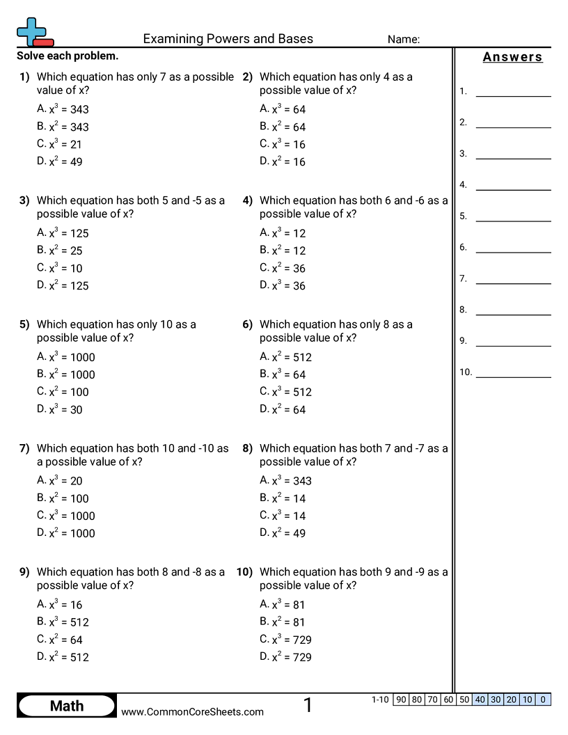 Examining Powers and Bases Worksheet Download