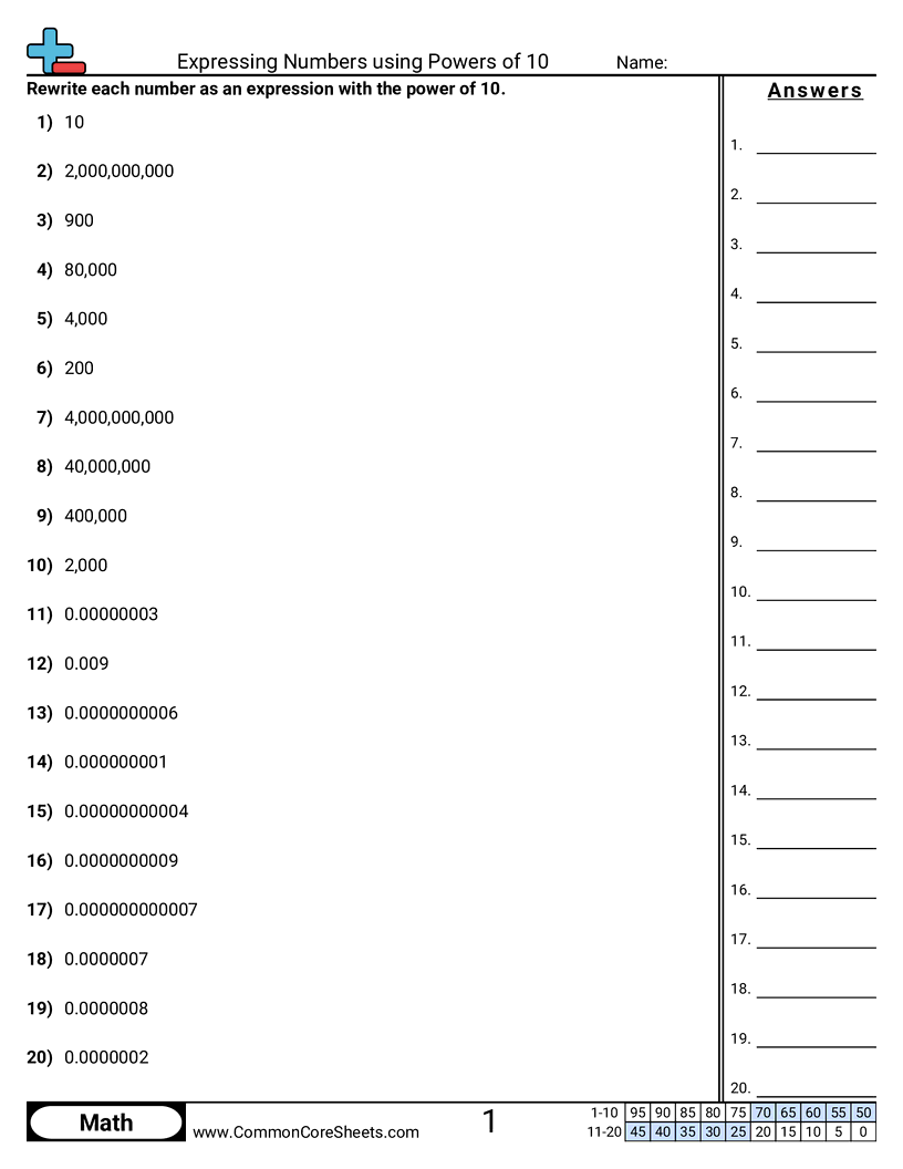 Expressing Numbers using Powers of 10 Worksheet Download