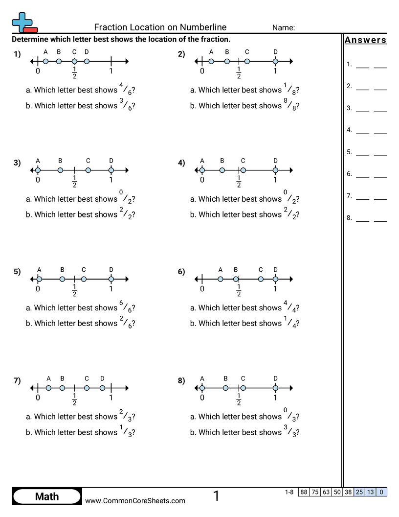 Fraction Location on Numberline Worksheet Download