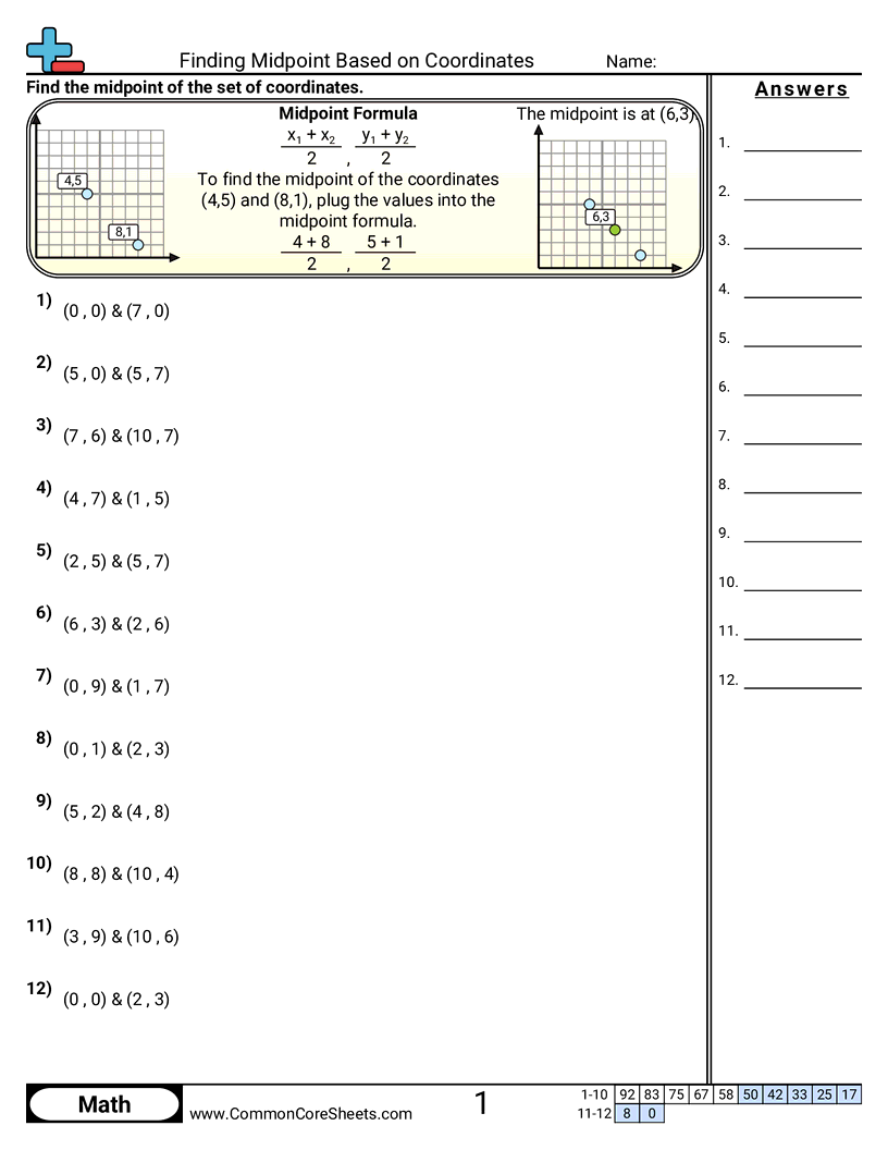 Finding Midpoint Based on Coordinates Worksheet Download
