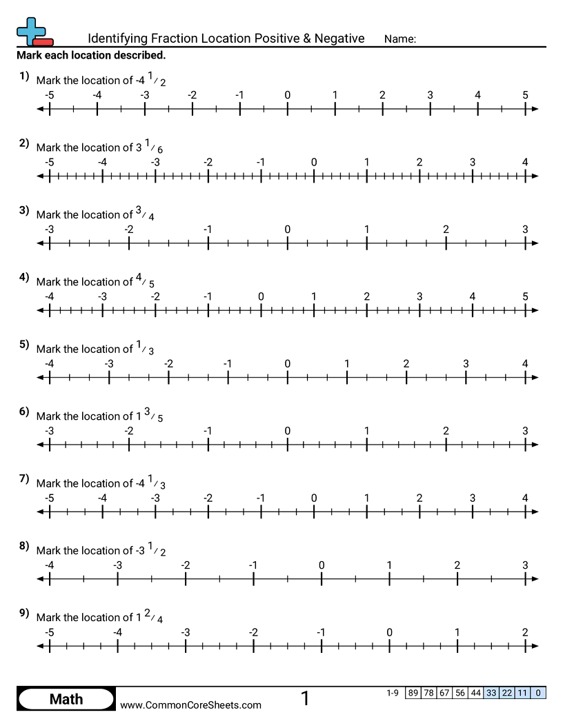 Identifying Fraction Location Positive & Negative Worksheet Download