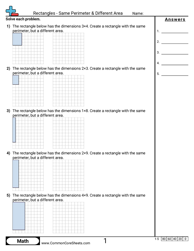 Rectangles - Same Perimeter & Different Area Worksheet Download