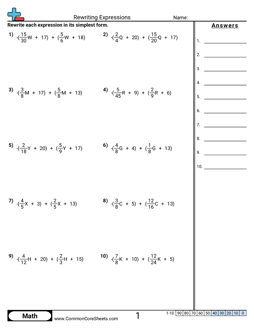 Common Core Sheets