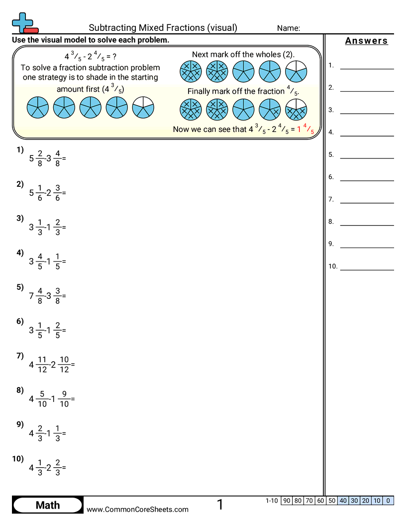 Subtracting Mixed Fractions (visual) Worksheet Download